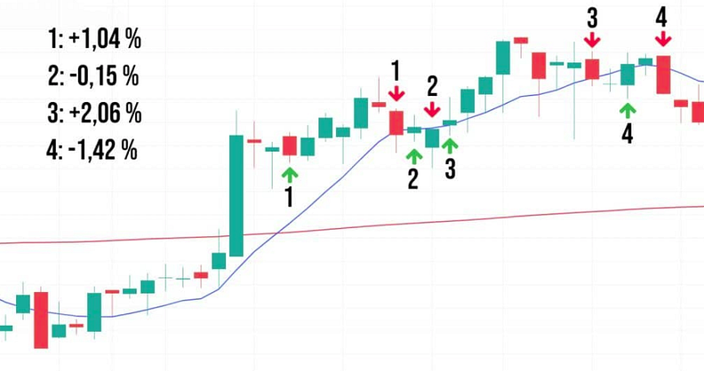 Exit Logic: Exit at a 0.05% profit, or when the price is below EMA (20).