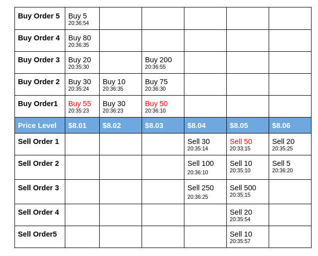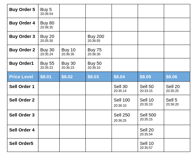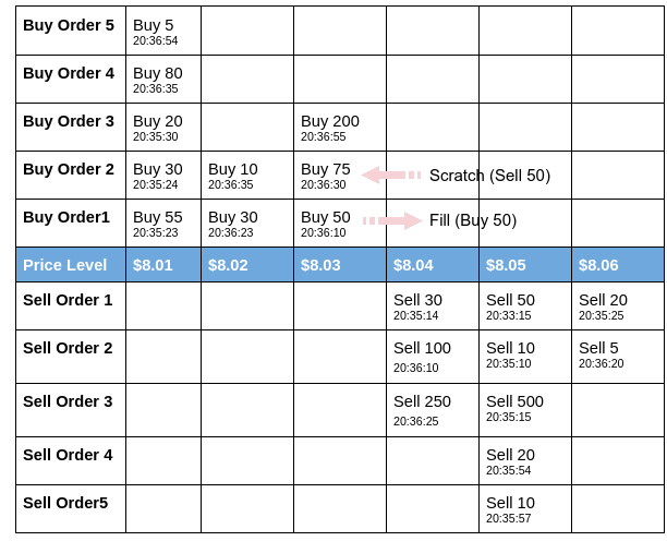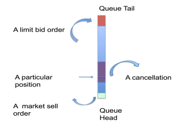 Each price level has an order queue. The order queue contains the orders that has been posted at the price level (and are waiting to be filled).