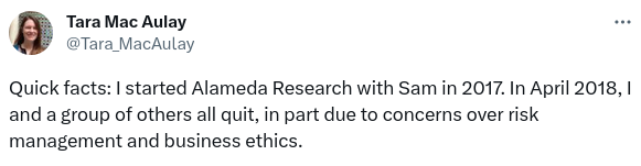 - In April 2018, half of Alameda's employees quit, due to "concerns over risk management and business ethics".